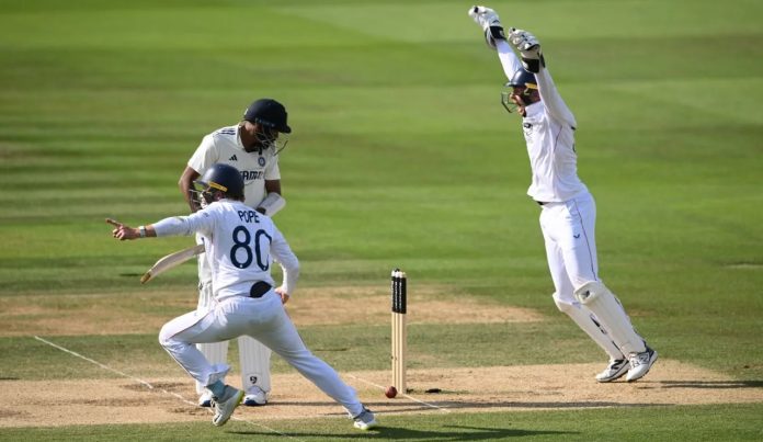 মোহাম্মদ সিরাজের দূর্ভাগ্য একই সাথে ভারতের। ইংরেজ স্পিনার শোয়েব বশিরের লাফিয়ে ওঠা নিরিহ বলটি ঠিক মাঝ ব্যাটেই খেললেন সিরাজ, কিন্তু বিধি বাম! বল গড়িয়ে গিড়িয়ে গিয়ে আঘাত করল লেগ স্টাম্পে। পড়ে গেল বেলস। আর তখনই দারুণ এক জয়ে বাঁধনহারা উল্লাসে মেতে উঠল বেন স্টোকসের দল। হারের হতাশায় ক্রিজে অনেক্ষন বসে রইলেন সিরাজ।