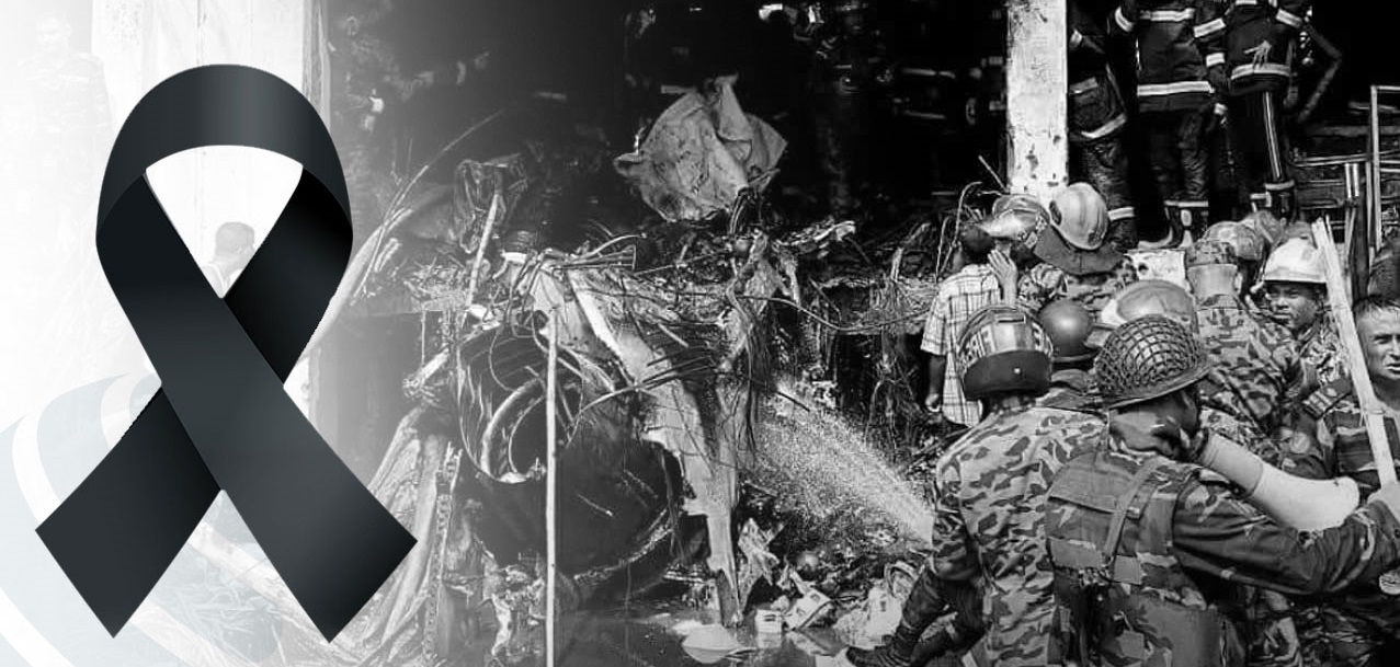 রাজধানীর উত্তরায় মাইলস্টোন স্কুল এন্ড কলেজে বাংলাদেশ বিমান বাহিনীর যুদ্ধবিমান বিধ্বস্তের ঘটনায় মঙ্গলবার রাষ্ট্রীয়ভাবে শোক পালন করা হয়েছে দেশজুড়ে।