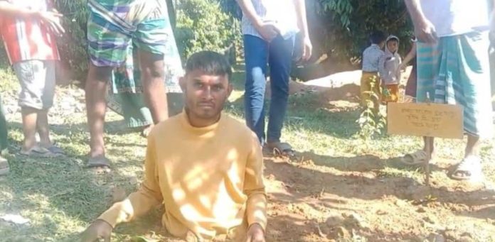 মাদকাশক্ত হয়ে মা’কে মারধরের অভিযোগে খলিল (৩৮) নামের এক যুবককে গাজীপুরের শ্রীপুরে কোমর পর্যন্ত মাটিতে পুঁতে শাস্তি দিয়েছে ক্ষুব্দ এলাকাবাসী।