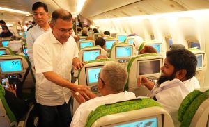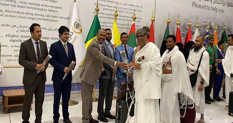 বাংলাদেশি হজযাত্রীদেরকে বিমানবন্দরে অভ্যর্থনা জানান দেশটিতে নিযুক্ত বাংলাদেশের রাষ্ট্রদূত মো. দেলওয়ার হোসেন।